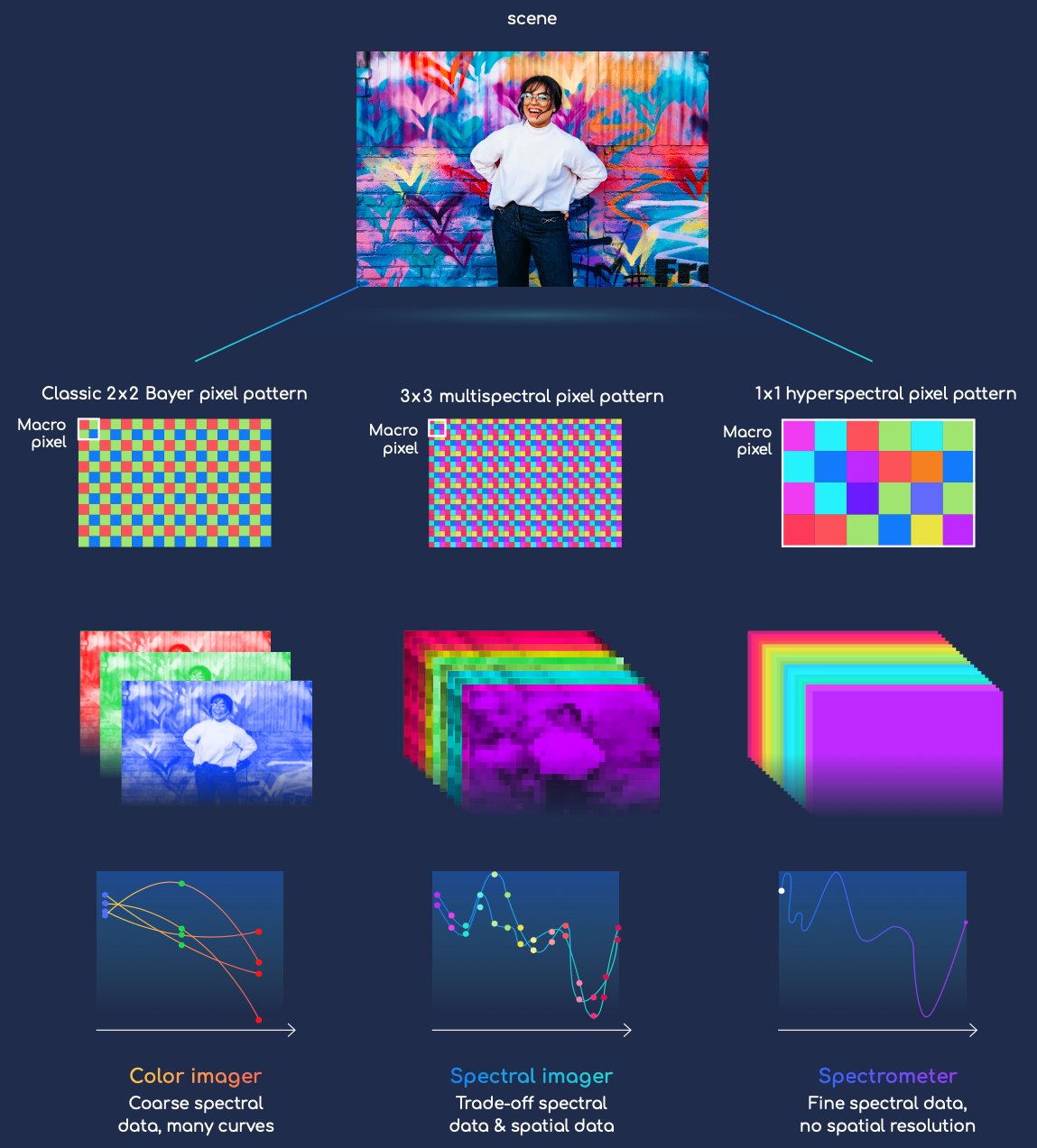 Our spectral sensors leverage our disrupting technology to meet mobile and consumer device requirements, enabling advanced user-environment interfacing, big data analysis, image fusion, and new applications such as skin health, smart gardening, secure authentication and accurate color photography.